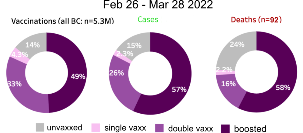 It doesn’t seem to be well known, but you can look up a lot of British Columbia’s Covid Data at the BC CDC website. Of particular interest are the graphs available at the BCCDC Covid-19 Survellance Dashboard and follow the link to the Vax Donut Charts. Here you can solve many of those niggling (can I use that word?) problems about vaccination effectiveness.