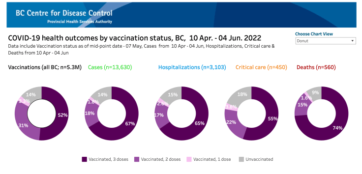 If your initial hypothesis was that vaccination would prevent disease, this is a big fail. If on that failure your secondary hypothesis is that the vaccinations would prevent severe outcomes, this is yet another fail. Failing any actually health outcome the third hypothesis is that if you get your booster you will be a good Canadian. In BC it looks like good Canadians have been rejecting the boosters. The number of boosted BCers has only increased by 2% over the last two months. I think the BC population is wising up to our coercive non-scientific politicians and the non-scientific health cartel.