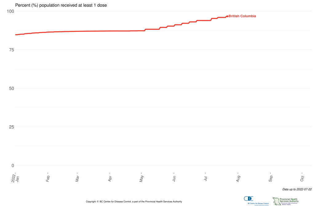 A graph that shows that the BC population is now about 97% vaxxed even though the Donut graphs have shown 14% unvaxxed since April, dropping only last week to 13.5%, a rounded 13%. Is this sloppy data keeping or is information being intentionally obscured? Demonstrating vaccination success by data manipulation?