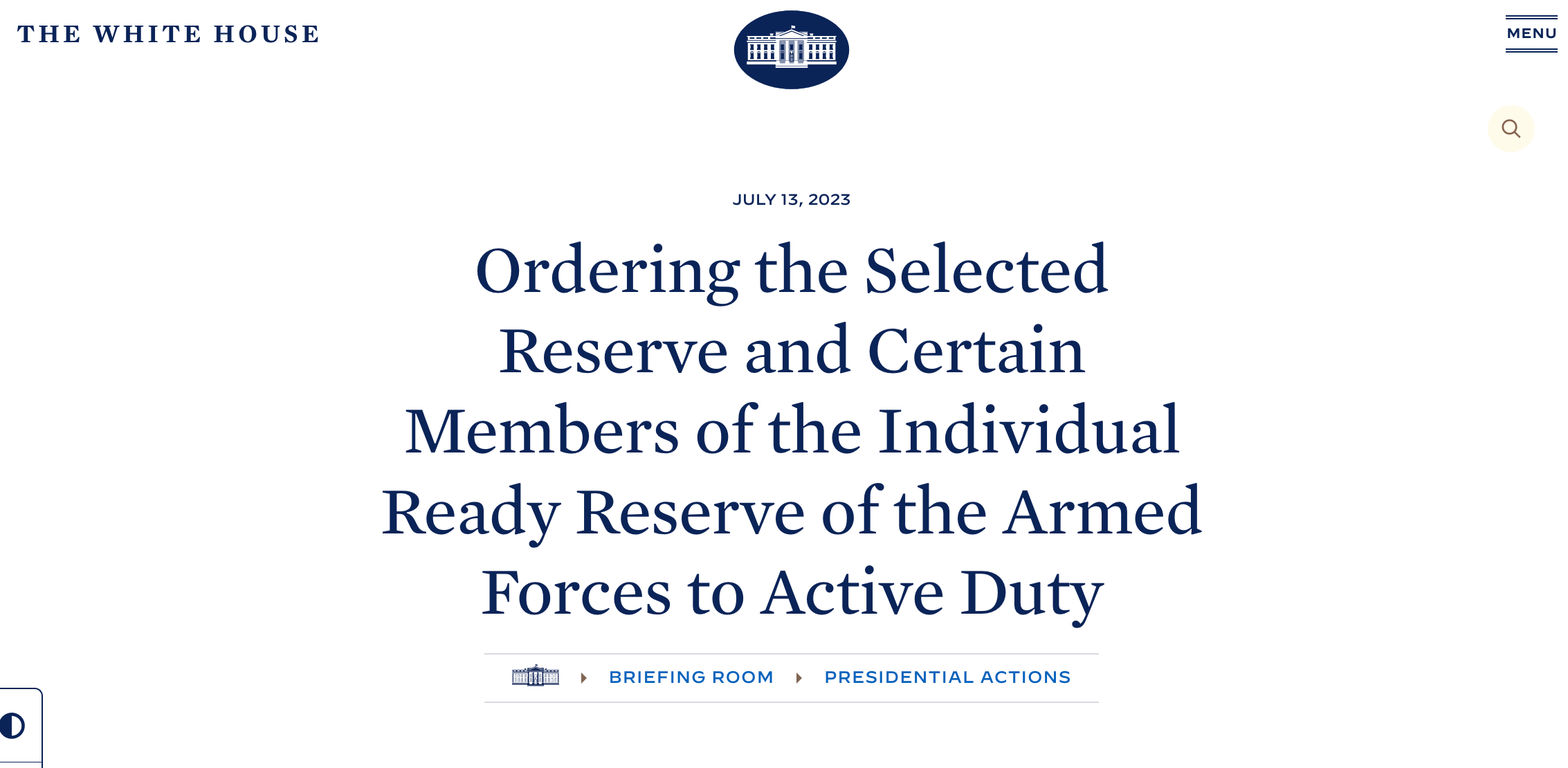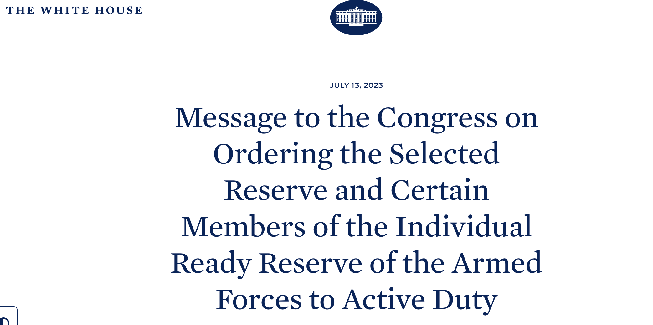 Breaking News: Biden orders to active duty members and units of the Selected Reserve