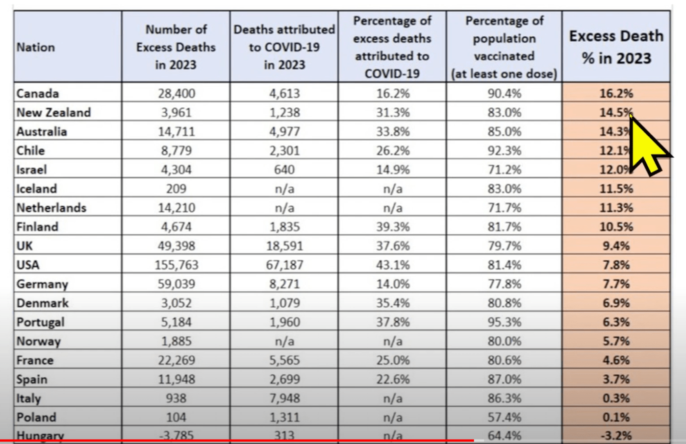 And if that is not shameful enough, the health ‘experts’ are ignoring the epidemic of excess deaths that has been claiming tens of thousands of lives and the unsurprising coincidence that the deaths correlate to the inadequately tested mRNA shots. Canada is at the top of the list with a 16% excess of deaths in this past year.