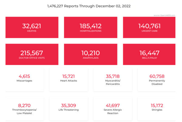 https://joannenova.com.au/2023/04/vaccine-damage-300000-deaths-in-the-us-148-billion-lost-and-10-say-a-member-of-their-house-died/ Vaccine damage: 300,000 deaths in the US, $148 billion lost, and 10% say a member of their house died By Jo Nova The crime of the century “Perhaps the most extraordinary thing about this state of affairs is that most Americans don’t know it’s happening.”“…this death count in one year is 5.2 times the... Continue Reading →